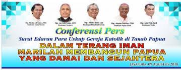 This circular letter is addressed to the Catholic congregation in the Land of Papua, to oriests and pastoral parish councils, grassroots Church communities, consecrated life instititions and Catholic lay organisations. Because many of the issues we will talk about are intertwined with local government and the lives of the wider population, we also address this circular letter to local government, institutes of elected representatives and all well-intentioned individuals. After we celebrate the successful recent elections, even though some small resentments may have arisen here and there, and as we move towards the elections of representative councils and the next President and Vice-President of the Republic of Indonesia, we believe this is an appropriate moment to address many of the issues which require our attention as part of our collective effort to build a peaceful and prosperous Papua.
